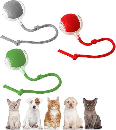 2026 Upgrade Cat Toy USB Charge, 360° Smart Automatic Rolling Three Modes, Fast Charging and Long Lasting, Adaptable to All Cats (Green+Red+Gray)