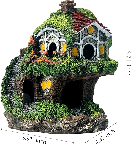 RVQIGYPFish Tank Decoration Hobbit Cabin, Magic Underwater Cabin, elf House Aquarium Decoration, Hand-Carved Resin Material Anti-Fading Medium and Large Fish Tank Landscaping +Water Plants