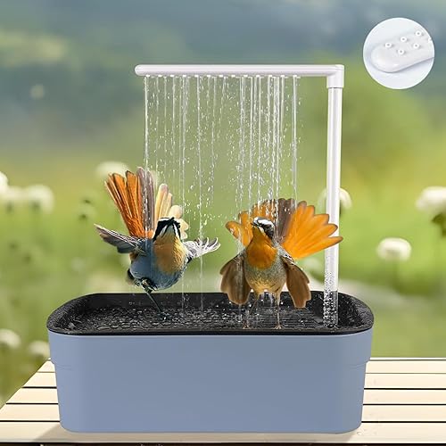 kathson Automatic Parrot Bathtub with Pump, Large Bird Shower Fountain, Parakeet Bath Tub for Medium Birds,Cockatiel,Cockatoo,Lovebird,African Grey,Conure, Budgie (Blue)