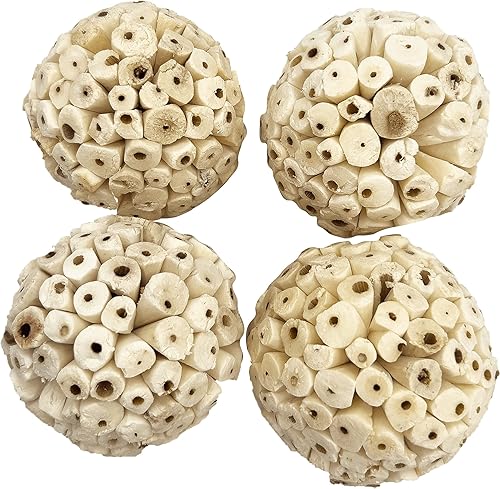by M&M 5110 Small Sola Bird Balls Pk3 - Handmade Natural Sola Wood Bird Foot Toys, Shreddable Lightweight Wood Balls, Easy for Beaks and Feet to Forage, Grat for Small to Med Birds