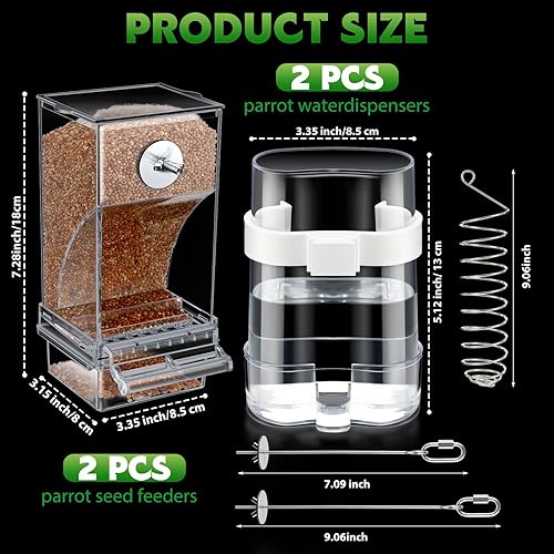 7 Pcs No Mess Bird Feeders Set Automatic Clear Parrot Feeder and Watered Dispenser Cage Accessories Stainless Steel Parrot Fruit Vegetable Skewer Foraging for Lovebirds Budgies Canary Finch