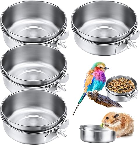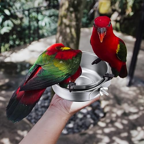 Aoriher 4 Pack Large Bird Feeding Dish Cups 30 oz Stainless Steel Parrot Feeders Food Water Cage Bowls with Clamp Holder for Cockatiel Conure Budgies Parakeet Macaw Small Dog Cat Animal