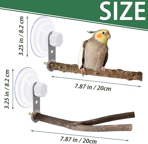 2 Pcs Natural Bird Perch Stand with Suction Cup Window Birds Perch for Window Mirror Car Shower Ceramic Tiles Bath Wood Training Perch, for Bird, Cockatoo, Macaw, Parakeet