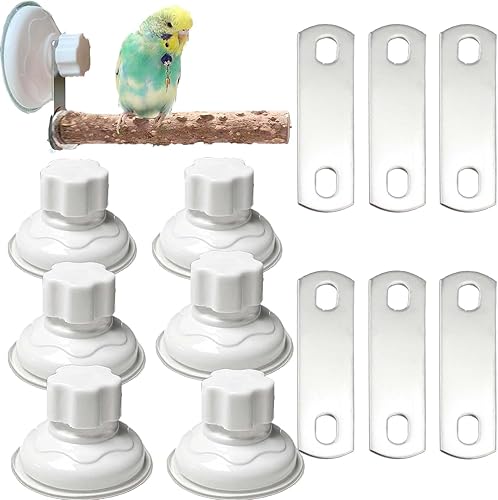 6 Pack Suction Cup Accessory Sets for Brid Perches Brid Stand Sticks Stand Toy Wood Platform for Parrot Parakeet Cockatiel Budgie Suction Cup for Window Bath Shower Car Travel Wall Outdoor Indoor