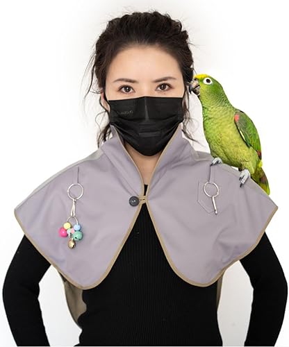 Parrot Anti-Scratch Shoulder Protector with Hang Bird Anklet&Toys Waterproof Pet Shoulder Pad Diaper Shawl for Small Medium Parakeets Cockatiels Sun Conures Macaws Lovebirds Finches (Grey,XL)