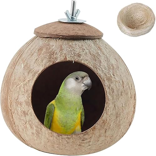 Coconut Bird Nest for Cage Natural Coconut Shell Birds House Parakeet Small Coconut Hide Breeding Hut Bird Cage Accessories for Parrot Lovebirds Budgies Cockatiel Conure Finch Canary