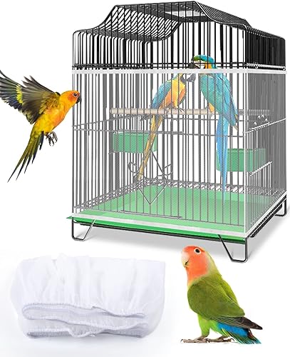 Bissap 2 PCS Bird Cage Seed Catcher, 59-90'' Universal Birdcage Net Nylon Adjustable Elastic Band Stretchy Skirts Mesh Cover for Parrot Cage Seed Guard (Not Include Birdcage)- White & Black