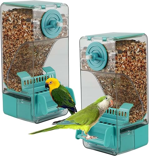Bird Feeder No Mess 2PCS Automatic Clear Bird Seed Food Container Acrylic Parrot Feeder Dispenser Cage Accessories for Parakeet Budgies Cockatoo Canary Love Bird (Green)
