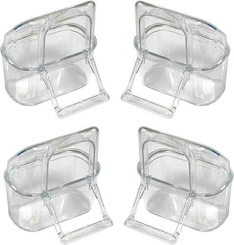 Lot of 4 Acrylic Clear Plastic Seed Food Water Feeder Hood Cups for Bird Parrot Cage with Spring Lock Feeder Doors