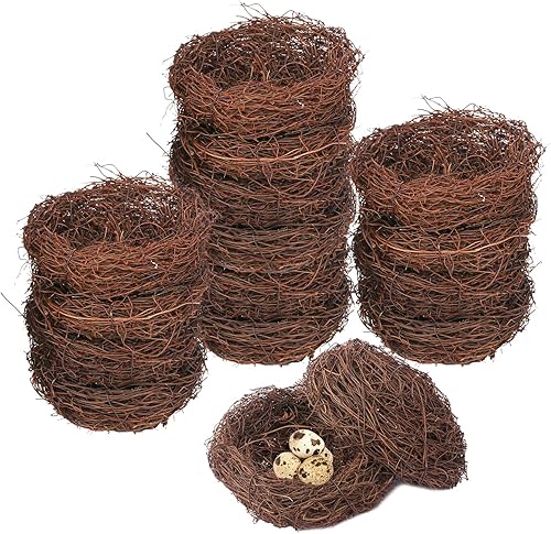 16 PCS 7 Inch Artificial Bird Nest for Crafts, Handicraft Rattan Bird's nest, Small Bird Nest, Bird's Nest Decorating Kit for Holiday, Table, Garden, DIY Terrarium Decor