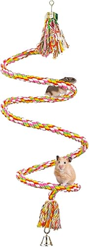 SunGrow Rope Perch for Parrots, 59” Long, Bungee Bird Toy, Brightly Colored Handmade Chew Toy, Spiral Design with Jingling Bell
