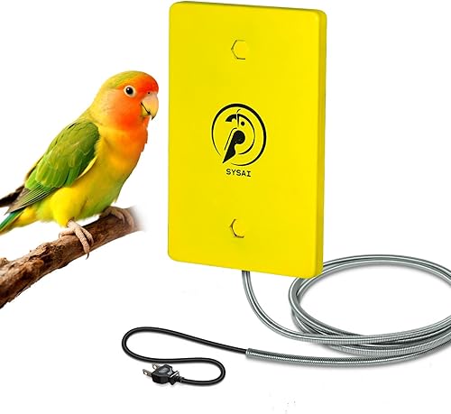SYSAI Bird Heater for Cage,Snuggle-Up Warmer Plate 4x6 Inch with Bite Proof Cord, Adjustable Temperature 104°F/113°F for Small Birds - Parakeets, Cockatiels, Conures