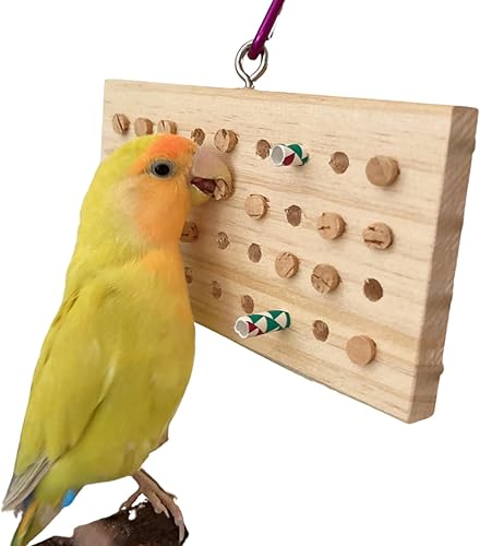 Parrot Chewing Toy with Wooden Corks and Paper Tubs Hanging Chewing Toy Wear-Resistant Wooden Parrot Toys Bird Toy Interesting Bird Cage Accessories