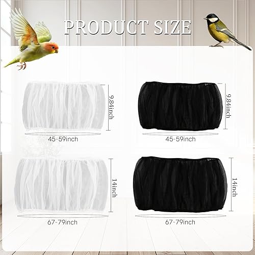 4 PCS Bird Cage Cover, Universal Bird Cage Seed Catcher, Adjustable Elastic Band Stretchy Skirts Mesh Cover, Reusable for Round and Square Cages (M, XL, Black, White)