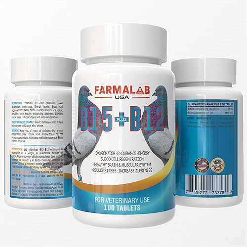 B15 B12 para Palomas Pigeon Vitamin Supplement, 100 Tablets, Energy and Endurance Formula Farmalab