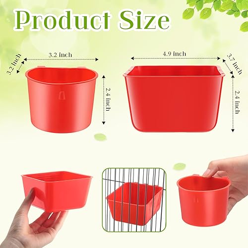50 Pcs 4.9 x 3.7 x 2.4'' Cage Cups Chicken Feeders 3.2 x 3.2 x 2.4'' Cage Cups Birds Feeders Hanging Chicken Water Cups Seed Bowl Coop Cups for Parrot Poultry Pigeon Feeding Watering, Red