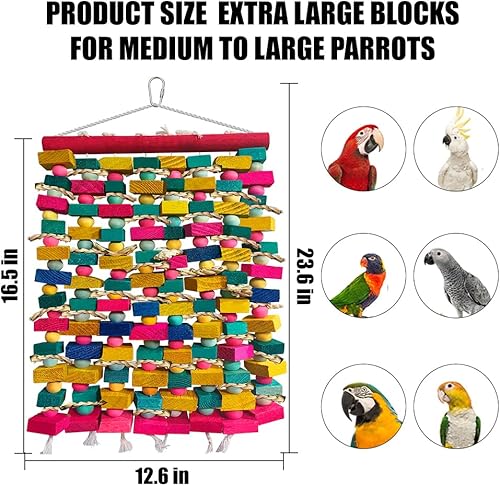 Extra Large Bird Toys for Macaws, Multicolored Wooden Blocks Bird Chewing Toy Parrot Cage Bite Toy for Macaws Cokatoos African Grey and Large Medium Parrot Birds