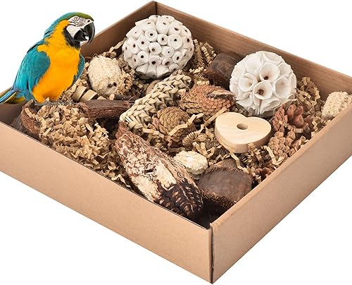 Natural Bird Toy Foraging Parrot Shredding Toys Box, Bird Chew Foraging Toys for Parrots, Conures, Budgies, Lovebirds, Small to Medium Birds(Nature Color)