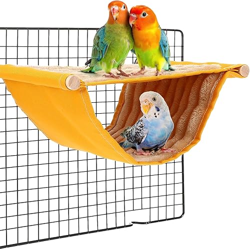 Winter Warm Bird Nest Bed, Parrot Hanging Bed Cage Hammock Snuggle Hut Parrot House Tent Bird Cage Stand Perch for Parakeet Budgies Cockatiels Lovebird Cockatoo Finch Hamster Chinchilla(Yellow)