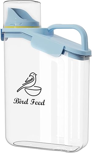 Bird Seed Storage Container-Airtight Bird Food Container-5-6lb/4.2 l Pet Food Storage Containers with Bird Seed Scoop-Wild Bird Seed Dispenser-forPetBirds Parakeets Finches Food MealwormsStorage/Clear
