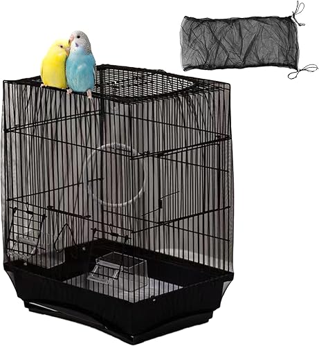 Bird Cage Cover, Parakeet Cage Acessories Adjustable Seed Catcher Birdcage Seed Catcher Birds Cage Netting Bird Cage Mesh Cover for Bird Cages (Black)