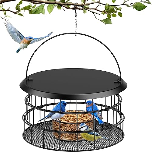 Hanging Bird Feeder, Metal Caged Squirrel Proof for Bluebird Feeders - Birdfeeder Hanging for Garden Yard Outside, Upgraded Metal Mesh, Blue