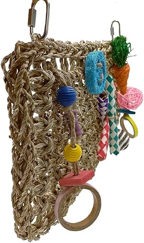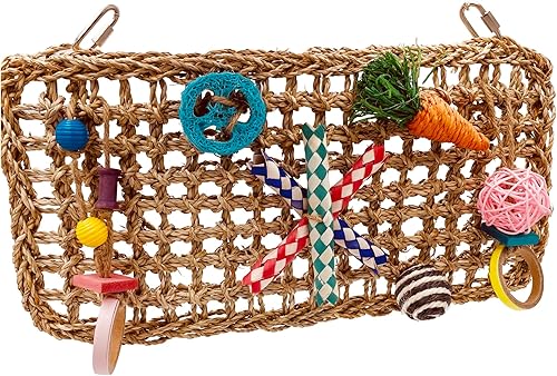 16.5 * 8.3 Inches Bird Foraging Wall Toys, Parrot Seagrass Woven Mat with Colorful Chewing Toys, Bird Activity Wall Toy for Conures Cockatiels African Grey Amazon Medium and Large Parrots