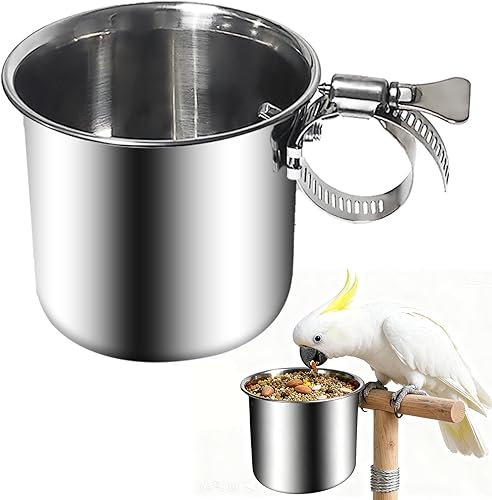 Bird Feeding Cups, Stainless Steel Parrot Food Bowl for Bird Stand, Parrot Water Bowl and Pet Perch Feeding Bowl for Macaw African Greys Conure Cockatiels, Middle and Large Parrots