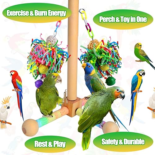BABORUI Bird Toys, Parrot Foraging Shredder Hanging Toys with Perches for Cage