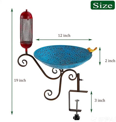 Metal Deck Mounted Bird Bath, 12" Beck Railing, Balcony Bird Bath for Outdoor, Garden, Patio, Antique Blue Green