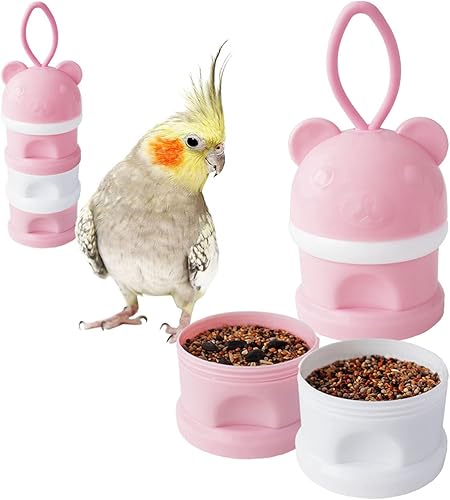 Portable Bird Feeder Cups Bird Food Water Treat Box Parrot Food Storage Container,Pet Travel Feeder(Pink)