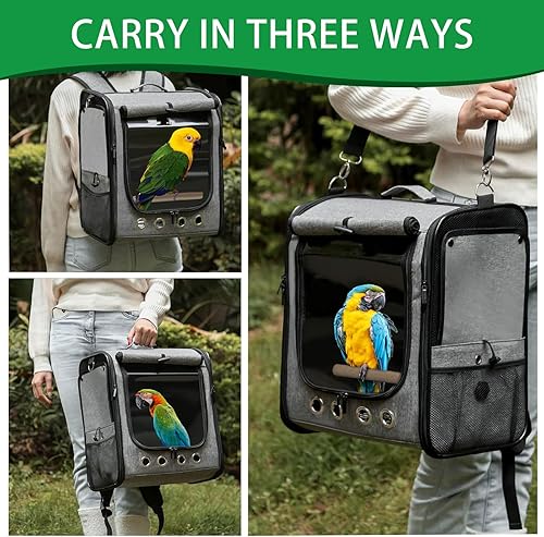 Bird Carrier Bag Bird Travel Cage with Stand, Lightweight Backpack for Parrot, Large Portable Bird Travel Bag, Pet Transparent Breathable Travel Cage