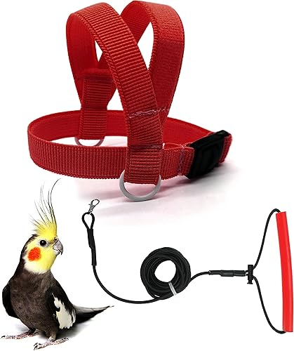 VANFAVORI Bird Harness with Buckle Clip and A Leash, Easy to Wear Training Kit for Bird Parrots Cockatiel S Size Weight 85-105 Grams,Red