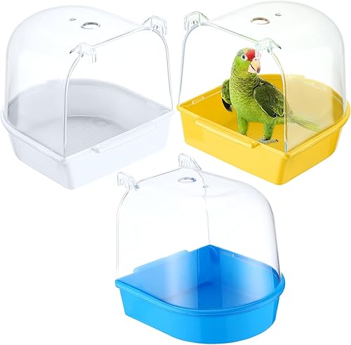 Honeydak 3 Pieces Clear Bird Bath for Cage Parakeet Bird Cage Accessories Hanging Bath Box Parrot Bathing Tub with Clear View for Cockatiel Conure Canary Budgies Parrots(Bright Colors)