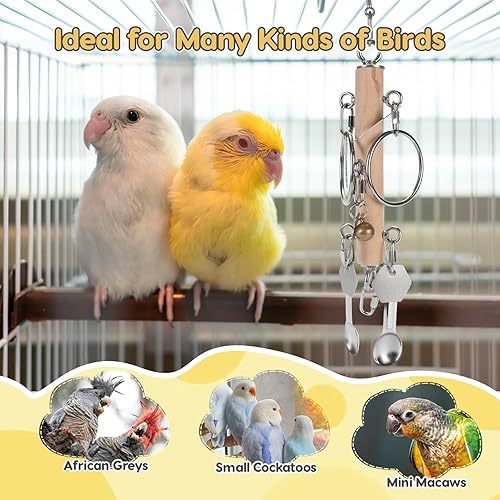 Parrot Bird Toys with Metal Spoons, Stainless Steel Keys Rings Toy, Intelligence Development Crisp Sound Toys for Amazons Mini Medium Large Macaws African Greys Cockatoos Eclectus