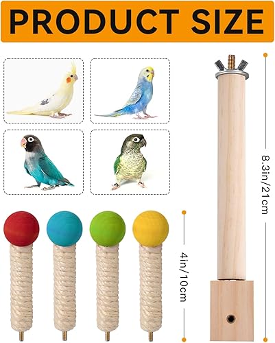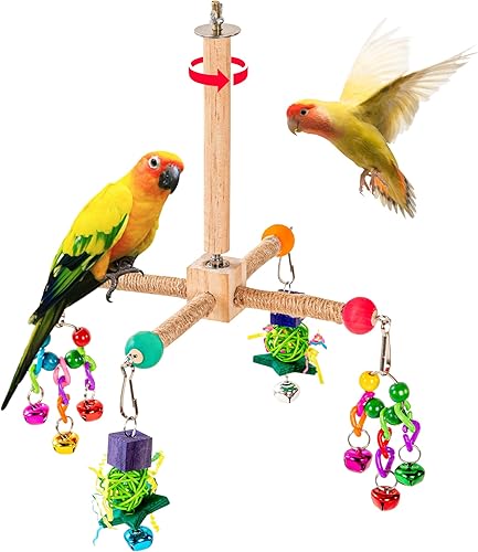 Bird Stand Perch Toy, 360° Wooden Spinning Toy for Parrots, Fun Cage Toy Accessory, Suitable for Budgies, Cockatiels, Lovebirds, Parakeets, Finches and Other Small to Medium Birds