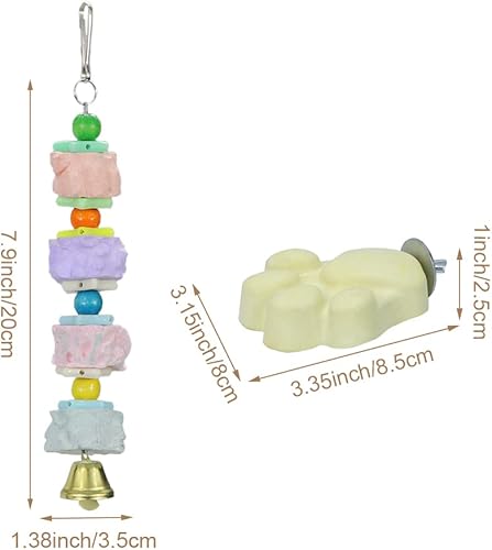 Litewoo Bird Beak Trim Colorful Calcium Stone Parrot Pet Chew Long String Cage Toy with Bell, Chinchilla Grinding Teeth Claw Shape Lava Block for Conure, Budgies, Parakeet, Hamster, Rabbit 2-Pcs