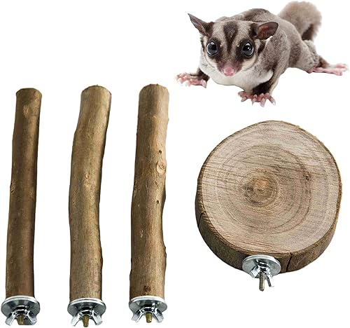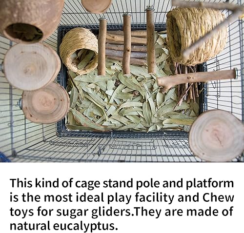 NEOUZA Sugar Glider Cage Stand Pole and Platform Made of Natural Eucalyptus,Molar Paw Grinding Standing Climbing Toy