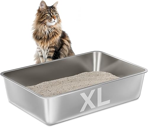 Stainless Steel Litter Box,XXL Metal Cat Litter Box for Big Cats 8IN Deep, Cat LitterBox High Sided Pet Toilet Easy to Clean,Cats Litter Pan for Adult Cats,Non Stick, No Smell