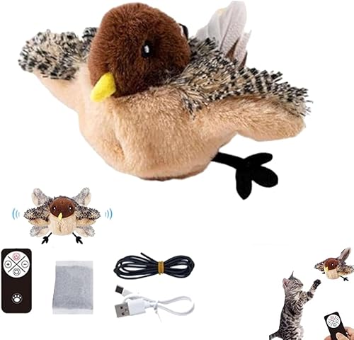 Flying Bird Cat Toy, Simulated Chirping Flapping Bird Cat Toy Wings, Rechargeable Interactive Flappy Bird, Realistic Cat Toys, Bird Catnip Toys for Indoor Cats (1PCS-A)