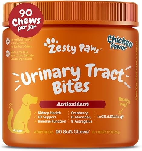 Zesty Paws Cranberry Urinary Tract Bites for Cats - Kidney & Urinary Tract Health - Soft Chews with D-Mannose, Vitamin B6 & L-Arginine - Immune & Gut Support - Bacon - 60 Count