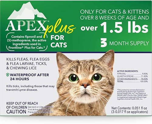 Apex Plus Cat Flea and Tick Treatment | 6-Month Supply, Over 1.5 lbs | Flea Treatment for Cats & Kittens | 24-Hour Activation, Waterproof, 30-Day Protection