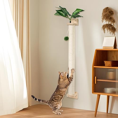 Cat Scratching Post 33" Tall Sisal Rope Cat Scratcher for Indoor Cats with Cat Toys Interactive Ball Self Groomer for Kittens Cats Adults