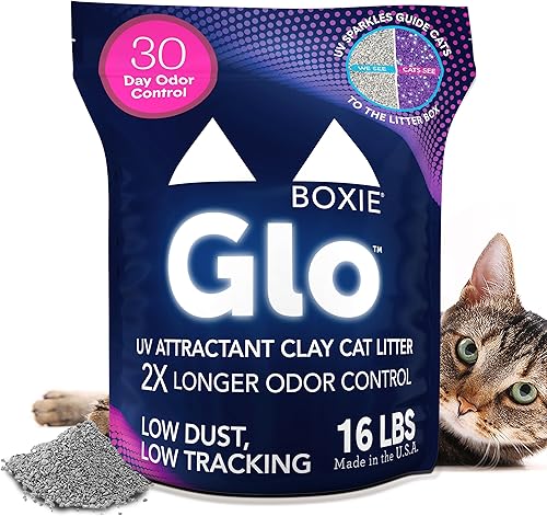 Boxie Glo Clumping Clay 30 Day Odor Control Cat Litter, 99.9% Dust-Free, Low Tracking, UV Light Attractant, 28 lb