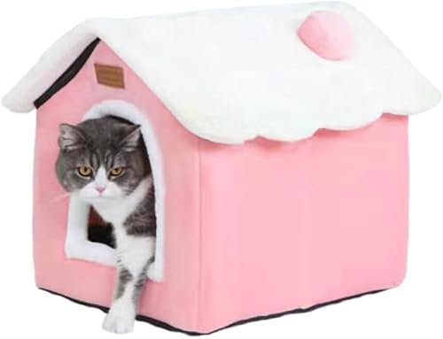 Cat Bed Cave, Cute Bear Shape Cat Beds for Indoor Cats, Pet House Cats Tent with Removable Cushion Pillow for Kittens Puppy Small Dogs (Brown, M-18 * 14.6 * 15.7in)