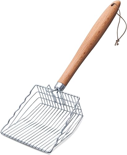 Cat Litter Scoop, Kitty Metal Scooper with Hook and Hole, Stainless Steel Kitten Poop Lifter for Litter Box, Non Stick, Durable and Heavy Duty Sifter for Easy Clean