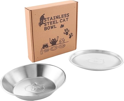 Stainless Steel Cat Dishes, 6.8" Wide Whisker Friendly Cat Dishes, Shallow Metal Food Bowl for Kitten and Small Pets Reducing Whisker Fatigue 4 Pcs