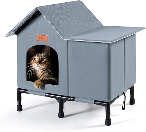 Insulated Cat Shelter Weatherproof Outdoor Cat House with Self-Warming Insulation Raised Bottom and Waterproof Roof for All-Season Protection (Grey, Large)
