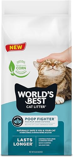WORLD'S BEST CAT LITTER Poop Fighter Maximum Odor Defense, 15-Pounds - Natural Ingredients, Quick Clumping, Flushable, 99% Dust Free & Made in USA - Long-Lasting Odor Control & Easy Scooping
