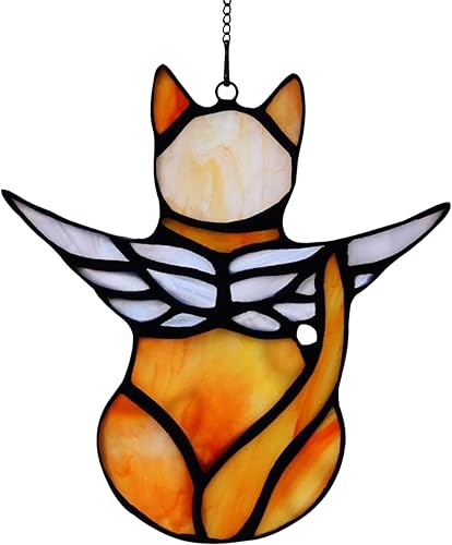 Cat Angel Memorial Statue, Stained Glass Window Hanging Decorations, Loss of Cat Sympathy Gift, Pet Memorial Sympathy Gifts Decoration, Miniature Hanging Ornament